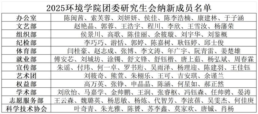 至此,环境与生态学院团委研究生会2025年秋季纳新工作圆满落幕。感谢每一位怀揣热忱报名的新生给予研会的信任,也向全程参与筹备、组织的工作人员致以诚挚谢意。秋意渐浓,新程启幕,期待新成员们带着创意与担当融入研会大家庭,与学长学姐携手深耕学生服务,共同为环生学院发展书写更精彩的篇章。