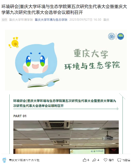 文化宣传方面,环境与生态学院团委研究生会宣传部积极响应重庆大学研团委会议精神,积极推进新媒体建设。在9月期间,顺利完成活动新闻稿撰写、推文、宣传物料制作等任务,同时认真经营我院微信公众号平台,为同学们传递青年声音。