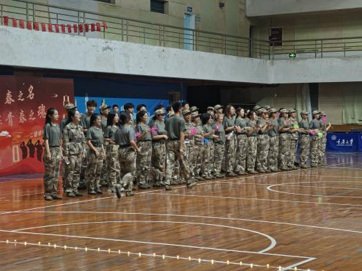 (4)活动目的:通过联欢晚会的形式凝聚团队力量、缓解训练疲劳,丰富军训期间文化生活,展现重大学子的青春风采,加深同学深厚情谊。