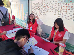 刘宇华同学说:“我负责的是‘工作三重奏’活动,需要引导同学们理解工作的三层意义,帮助他们思考并建构自己认可的工作意义。我们志愿者需要深入学习职业生涯相关知识,才能更好地为同学提供服务,解答他们提出的一些疑惑。在相互交流、学习的过程中,共同探讨工作的三层意义,彼此收获都更多。”