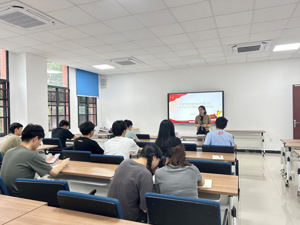 2023年5月18日下午,环境与生态学院党委召开2023年第三次支部工作业务培训暨支部书记例会。学院各支部书记参会,会议由赵楠老师主持。