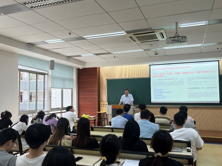 为深化党纪学习教育,切实领会新修订的《中国共产党纪律处分条例》,引导党员同志进一步学纪、知纪、明纪、守纪,推动党纪学习教育走深走实,6月6日,生态系师生联合党支部书记杨永川为支部全体党员上了一节以“守初心、担使命,筑牢理想信念根基”为主题的党纪学习教育专题党课。