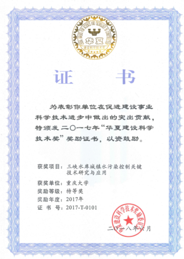 1 Research and  application of key technologies for urban water pollution control of Three Gorges Reservoir HE Qiang 2017 Huaxia Construction Science and Technology;Grand Prize;